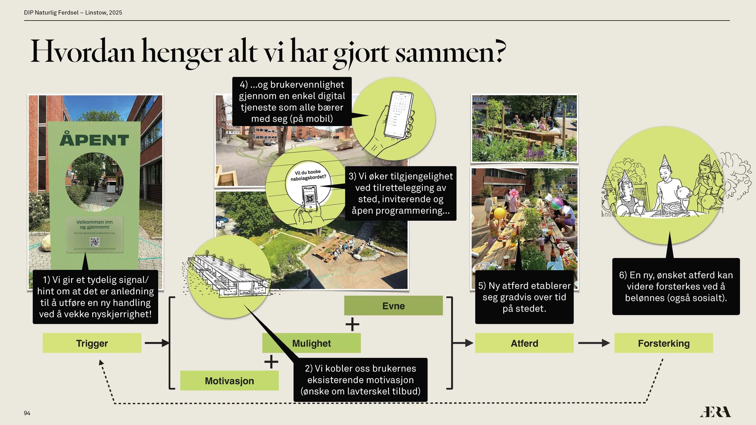 The project is built on behavior design principles — linking motivation, ability, and opportunity. Through interventions like wayfinding, social spaces, and programming, we create triggers that invite people in, make it easy to participate, and reinforce positive experiences over time. Together, these elements gradually establish new patterns of use in the area.