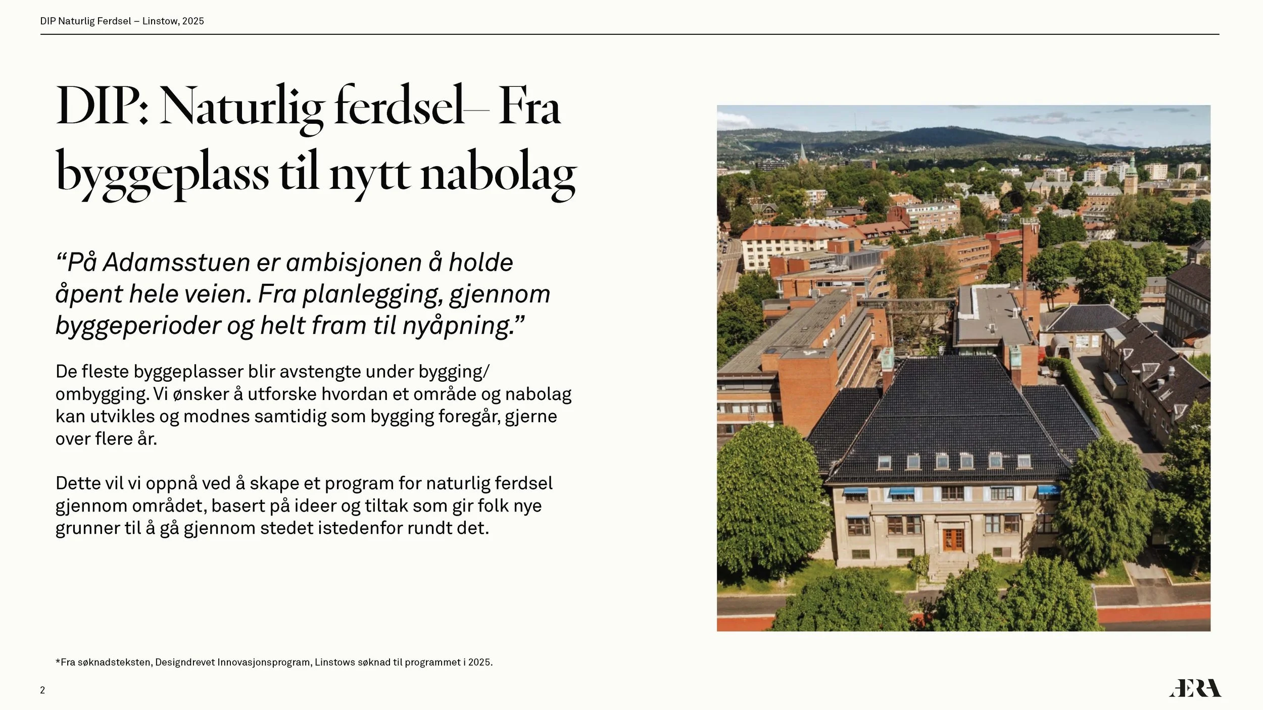 The project takes place at the former Veterinary School in Oslo — a large area in transition, surrounded by existing neighborhoods, students, and workplaces. While parts of the site are already in use, it will continue to develop over many years. This makes it a unique testing ground for how a place can evolve gradually, while still being open and relevant to people in their everyday lives.