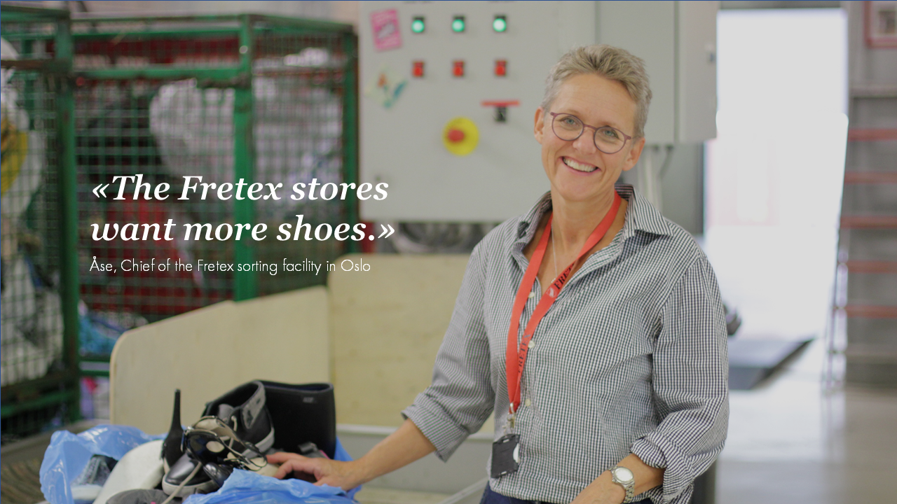 Åse is the head of Fretex’s sorting facility in Oslo, the biggest actor in the sorting and reselling of used clothing and shoes in Norway. She says that there is demand in Fretex stores for more good sneakers, however they don’t find enough quality sneakers in what they are able to review every day; they get approximately 30 tonnes of clothes and shoes to their facility daily but they only have the capacity to sort through 5 tonnes.